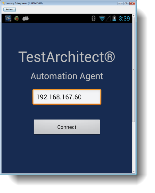 On the Android device, start the TestArchitect Agent.