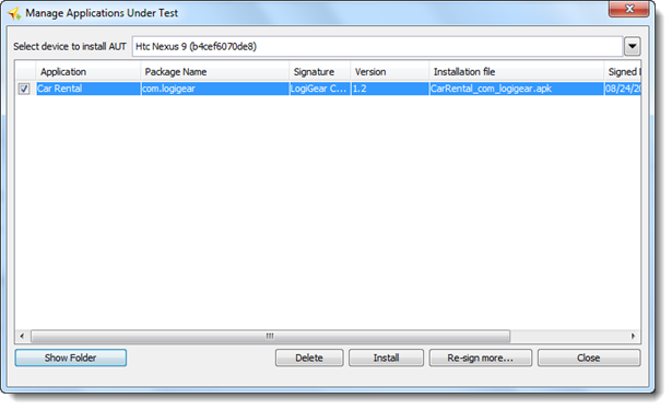 In TestArchitect, open the Manage Application Under Test dialog box, if not already open.