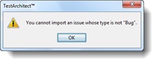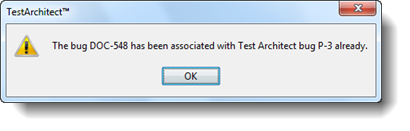 Each JIRA bug ID can only be mapped to a single TestArchitect bug. If you attempt to import a JIRA bug that is already linked to a registered TA bug, the following message is displayed: