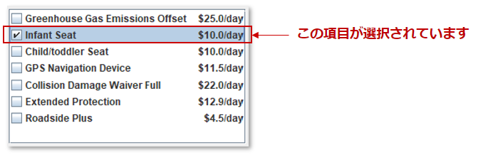 get list check レンタル情報 サービスリストを追加する Infant Seat $10.0/day s