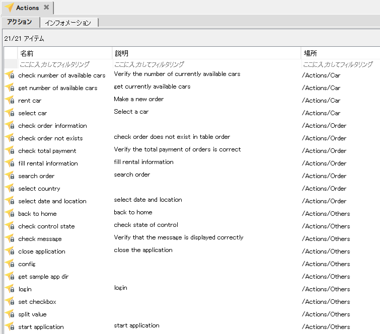 | Actionsノードまたはアクションフォルダ | ユーザー定義アクション |